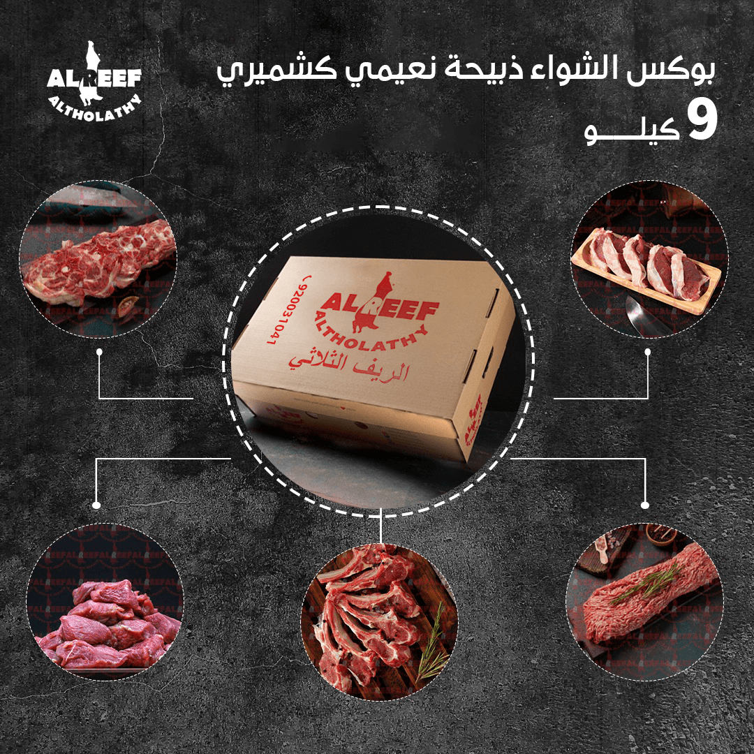 بوكس الشواء ذبيحة نعيمي كشميري 9 كيلو 848.00 ر.س السعر الأصلي هو: 848.00 ر.س.679.00 ر.سالسعر الحالي هو: 679.00 ر.س.