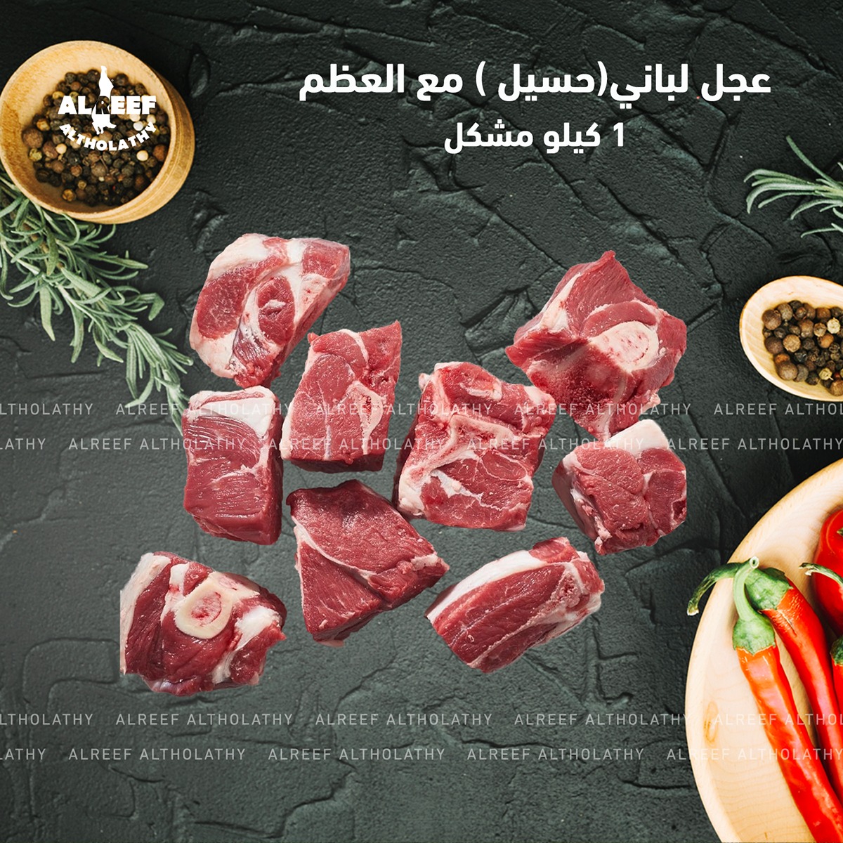 لحم عجل لباني حسيل مع العظم مبردة ومختارة بجودة عالية. خالية من الإضافات الضارة، تحتوي على دهون صحية، وغنية بالبروتينات والفيتامينات. الوزن: 1 كجم، سهل التحضير، بدون ملح أو بهارات، يسمح بإضافة التوابل حسب الرغبة."